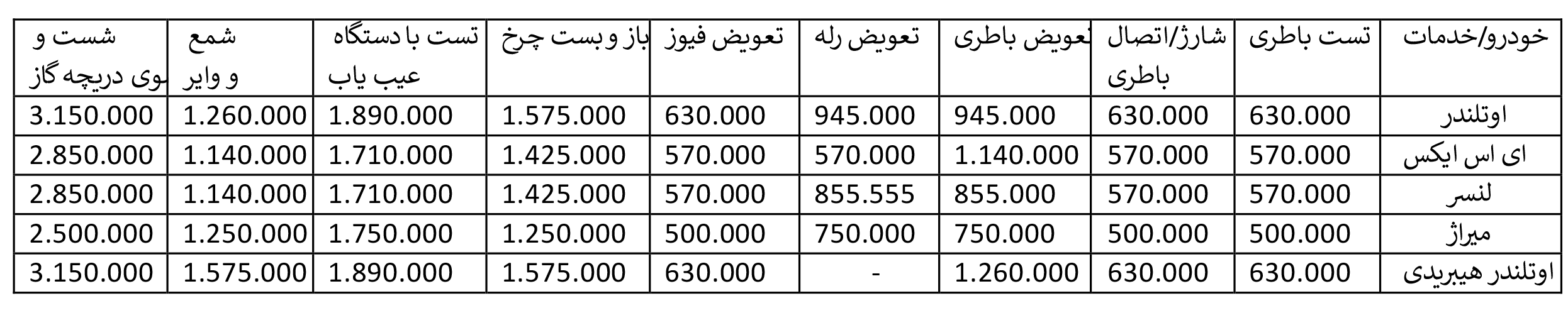 نرخ امداد خودرو