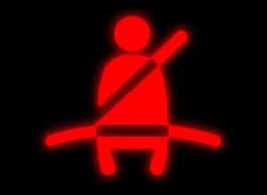 روشن بودن این چراغ به این معنی است که سرنشینان خودرو از کمربند ایمنی استفاده نکردهاند. این هشدار با توجه به سنسورهای موجود در صندلیهای خودرو فعال میشود؛ سنسورها تشخیص میدهند فرد روی صندلی نشسته است یا خیر و به این ترتیب باز یا بسته بودن کمربند ایمنی را تشخیص میدهد.